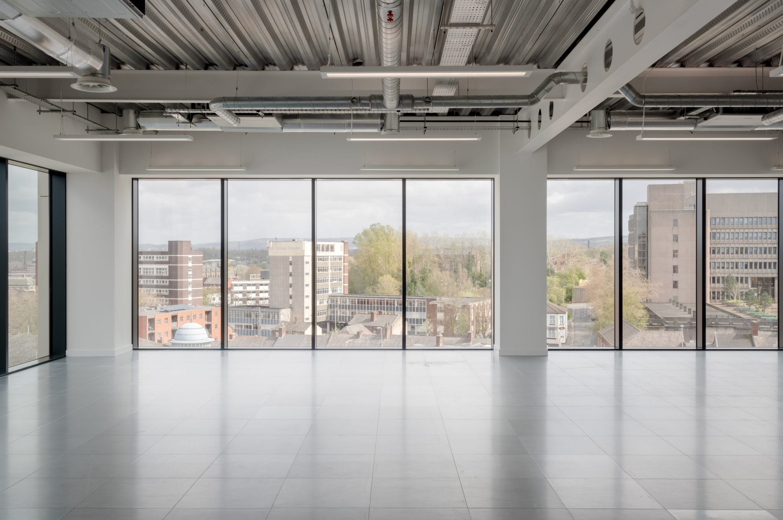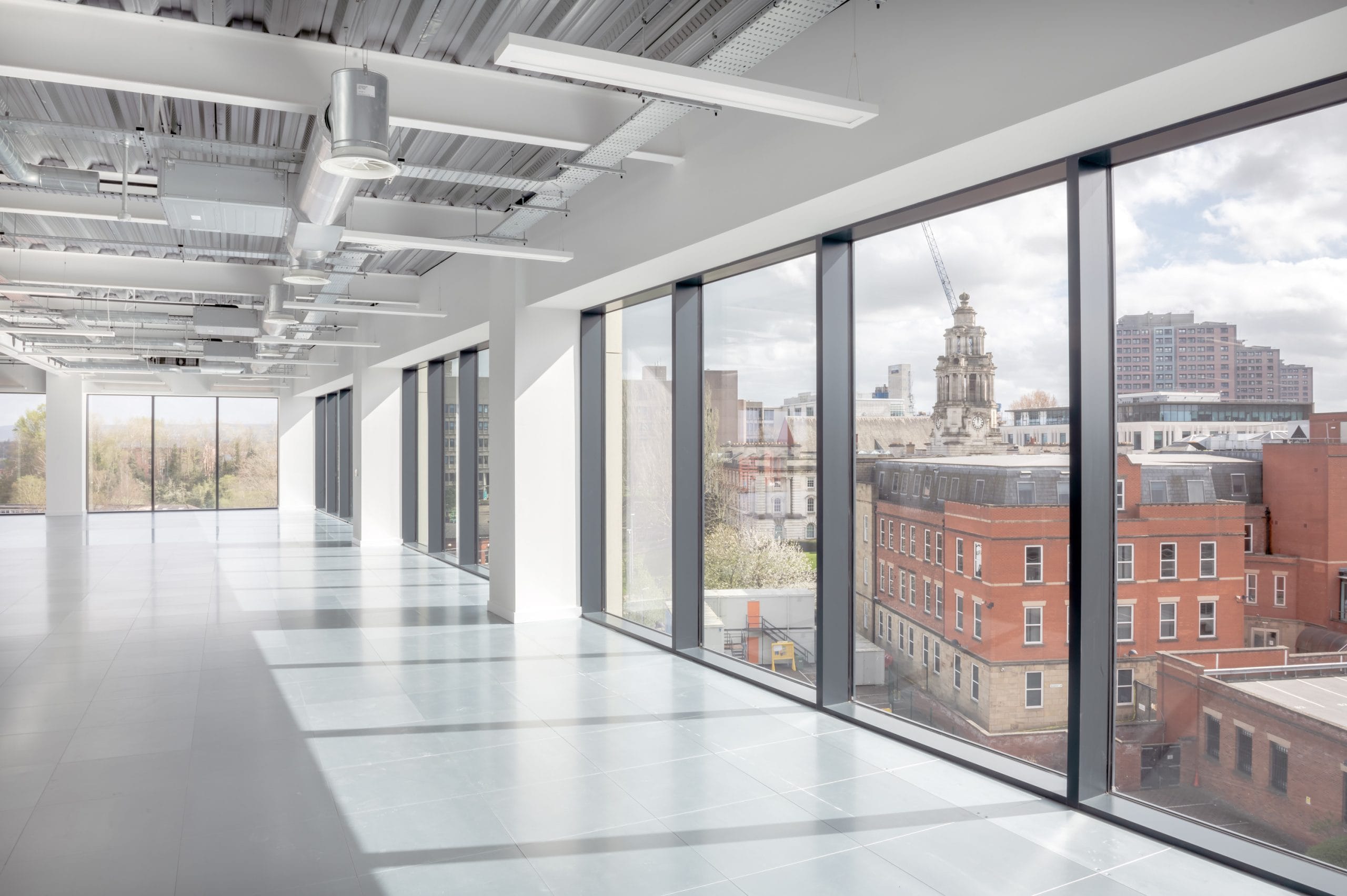 3 Stockport Exchange, a 64,000 sq ft Grade A office building featuring a stunning communal roof terrace with fantastic views right across Stockport and beyond, is now complete with workspace available to let.